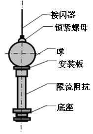 優(yōu)化避雷針由接閃器、限流阻抗、球、底座組成。