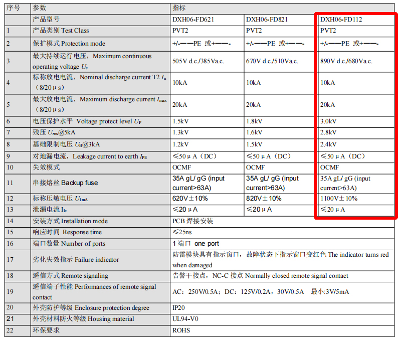 • DXH06-FD112          10-20kA 交流680V直流890V     中普光伏逆變器防雷器