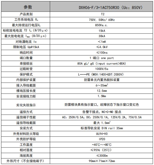 DXH06-F/3+1AC750R30        下進(jìn)線 15-30kA 850V 3P+N        中普電源防雷器