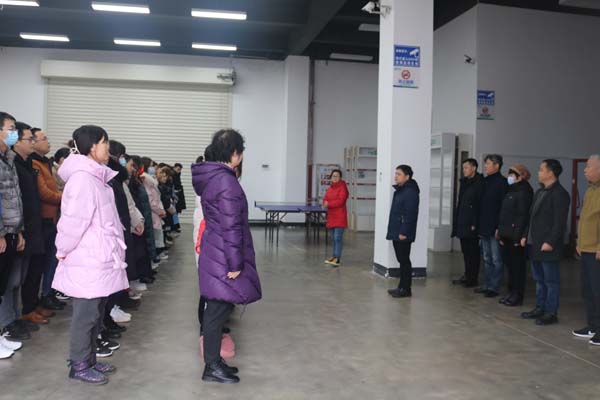 儀式開(kāi)始前,總經(jīng)理殷建云和董事長(zhǎng)殷建軍給全體員工上了節(jié)后復(fù)工復(fù)產(chǎn)第一課——安全生產(chǎn),強(qiáng)調(diào)各干部員工一定要落實(shí)好安全生產(chǎn)工作。隨后向所有到場(chǎng)的同事送上了新年的祝福與問(wèn)候:“祝愿大家新的一年萬(wàn)事如意,工作順利,業(yè)績(jī)攀升!”